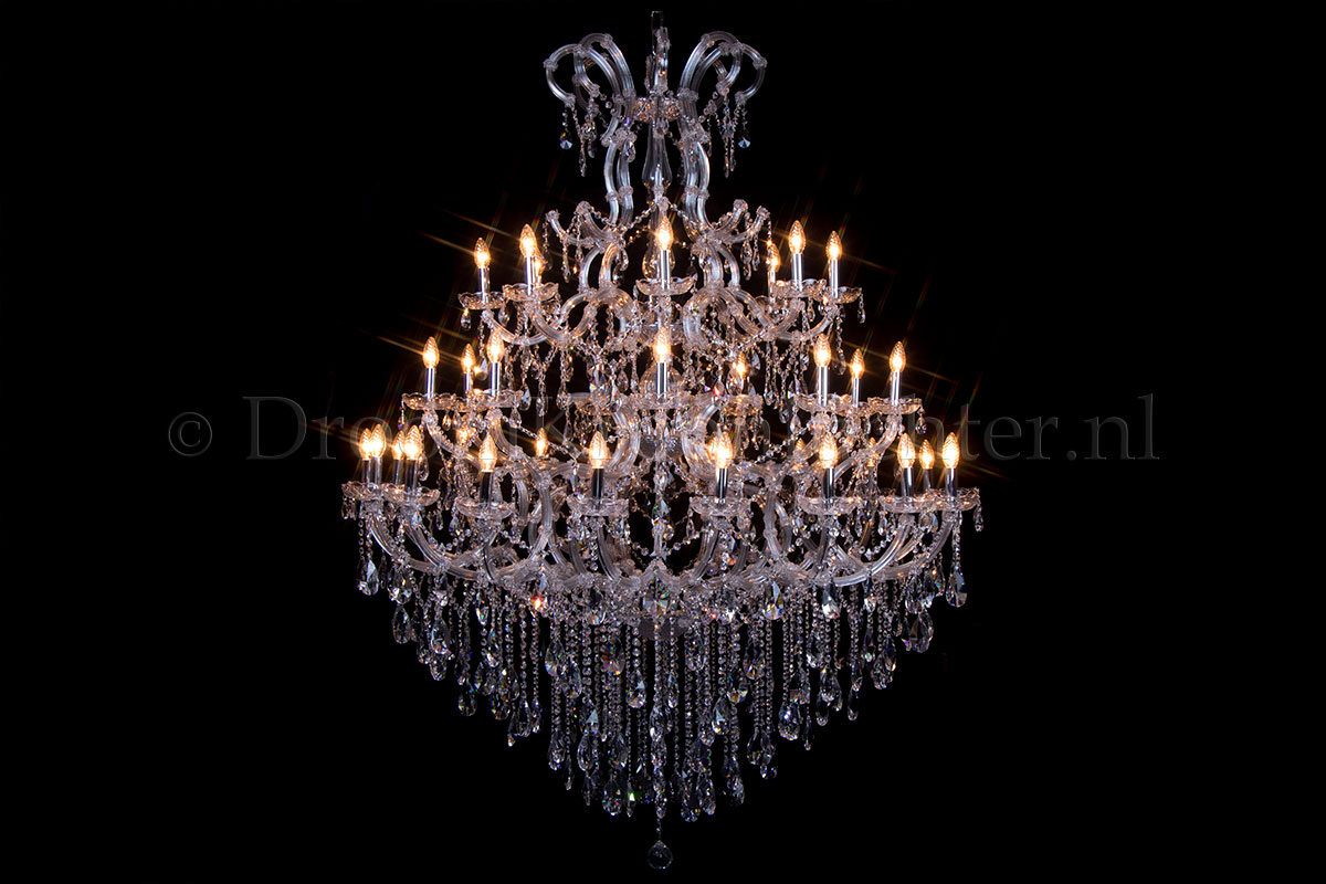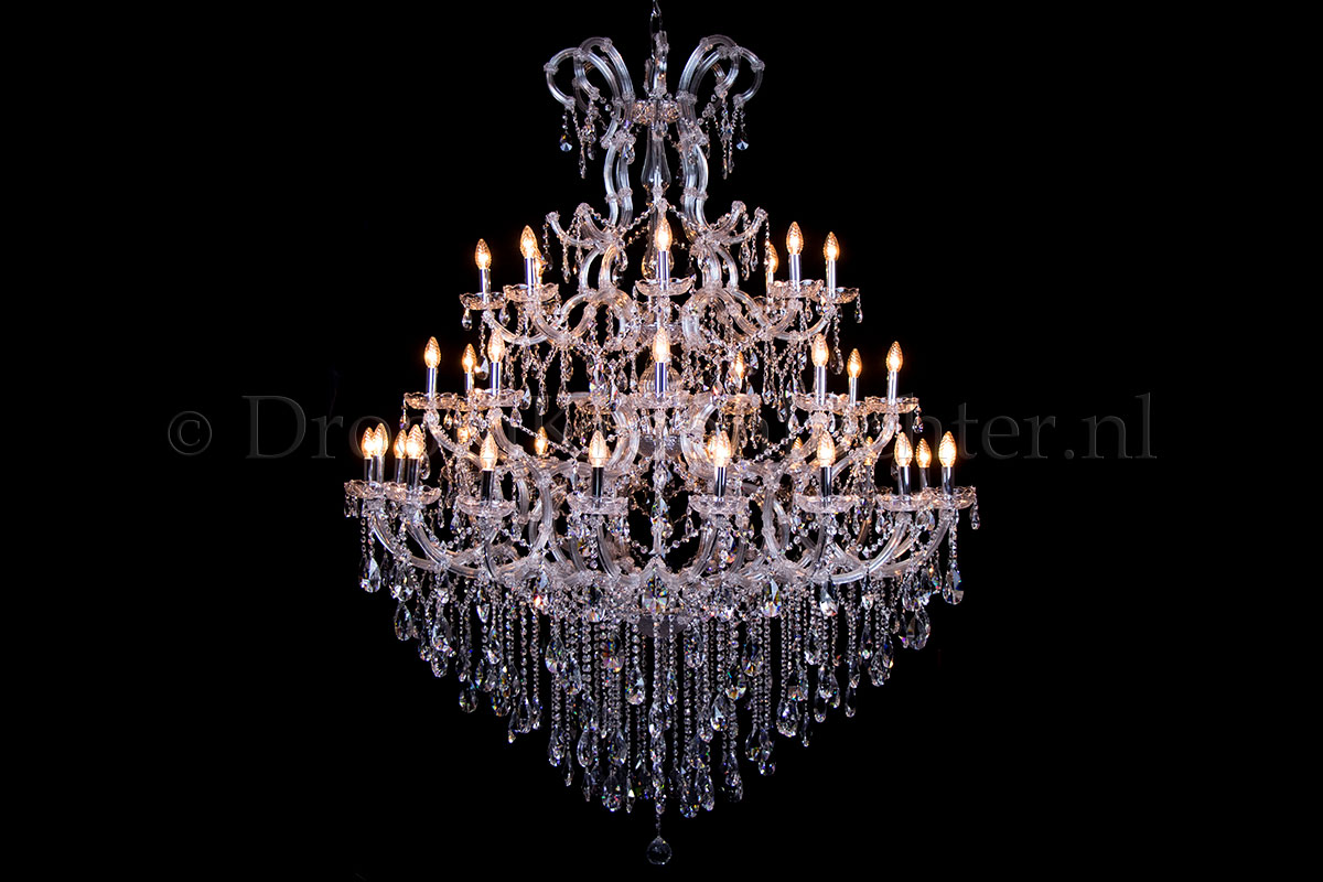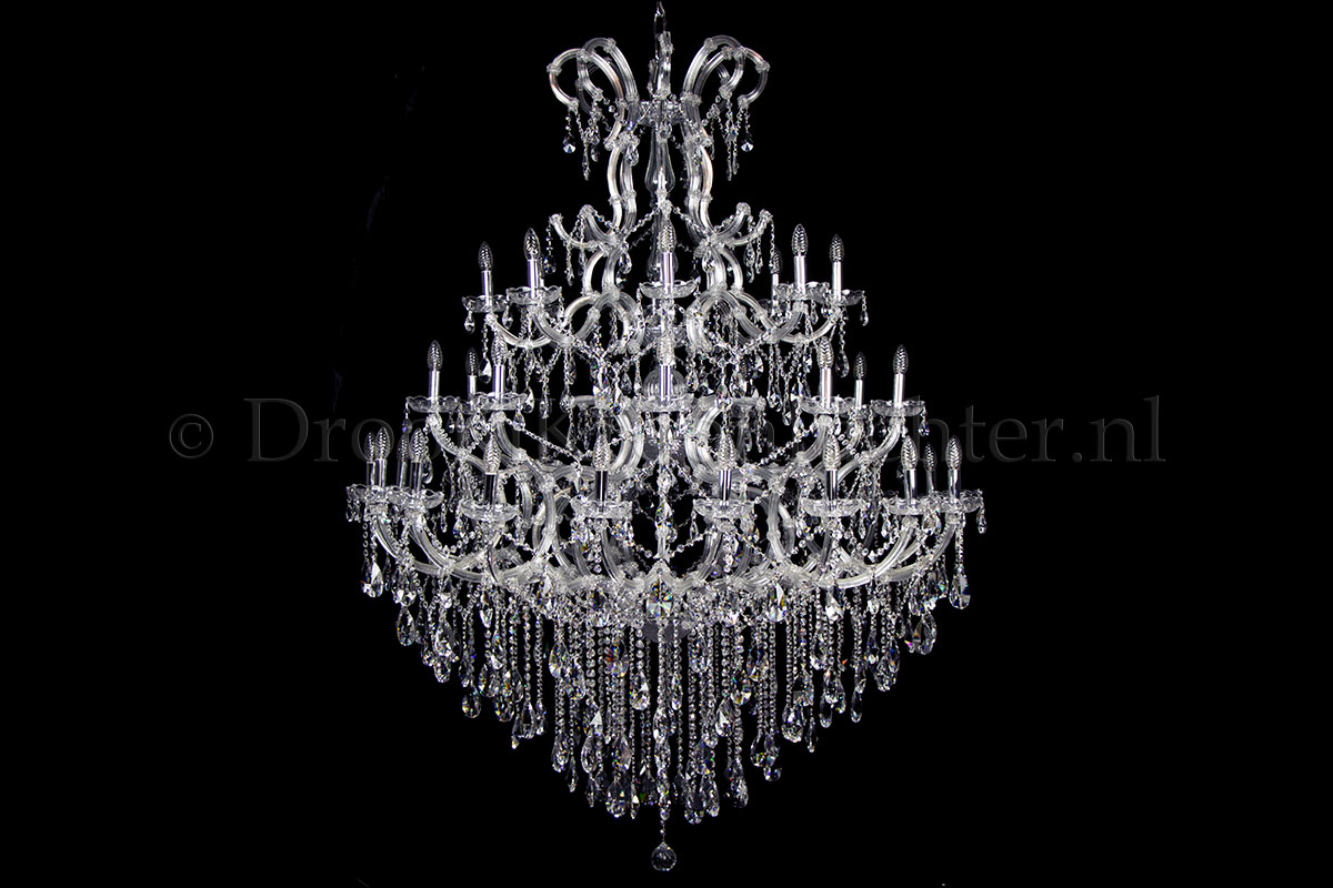 A beautiful chandelier with 45 light. The crystal chandelier Maria Theresa is chrome coloured with a perfect finish.