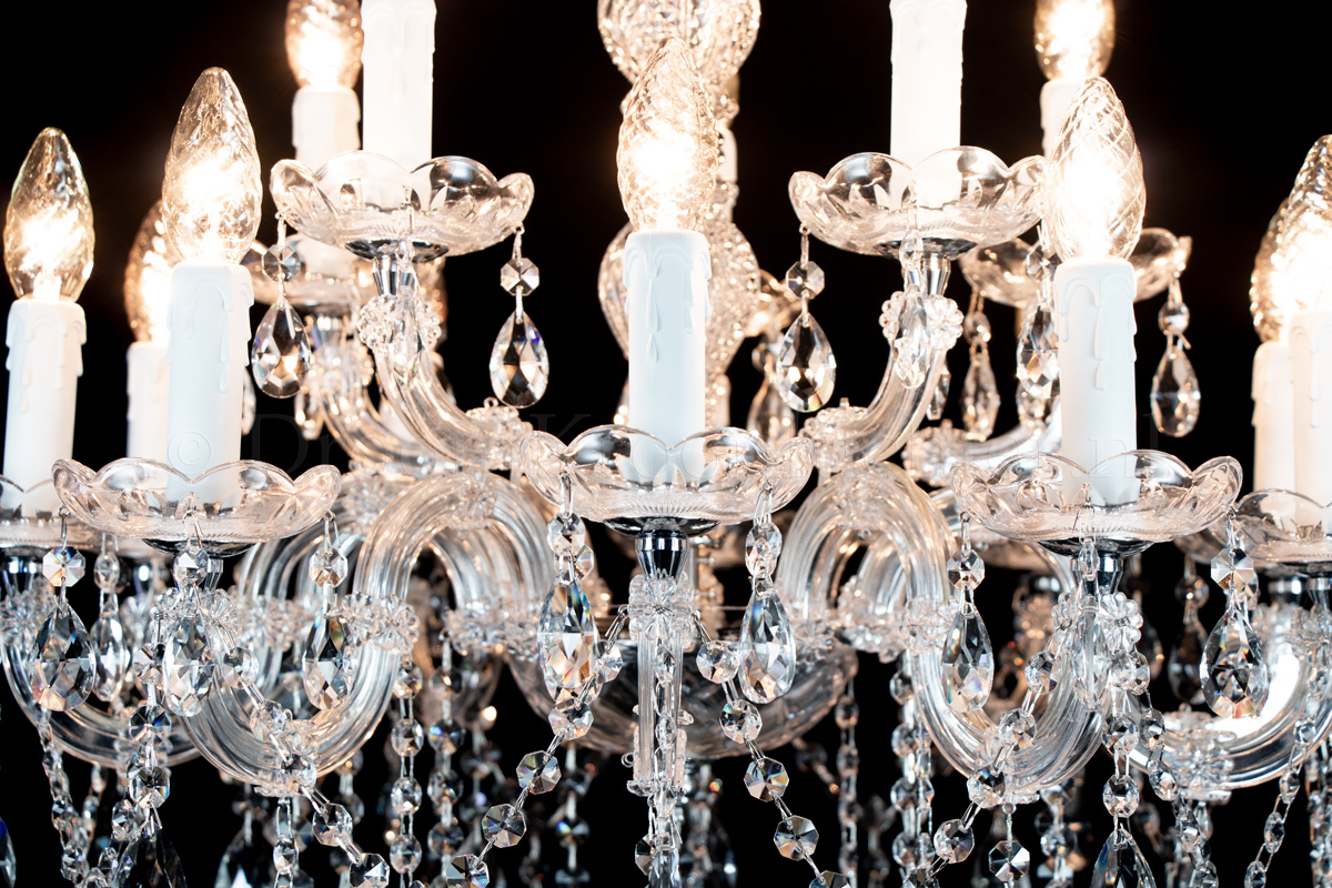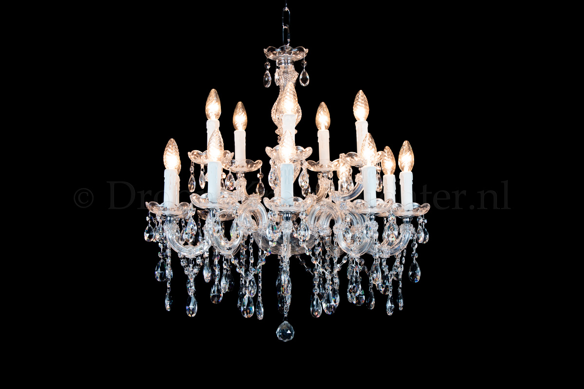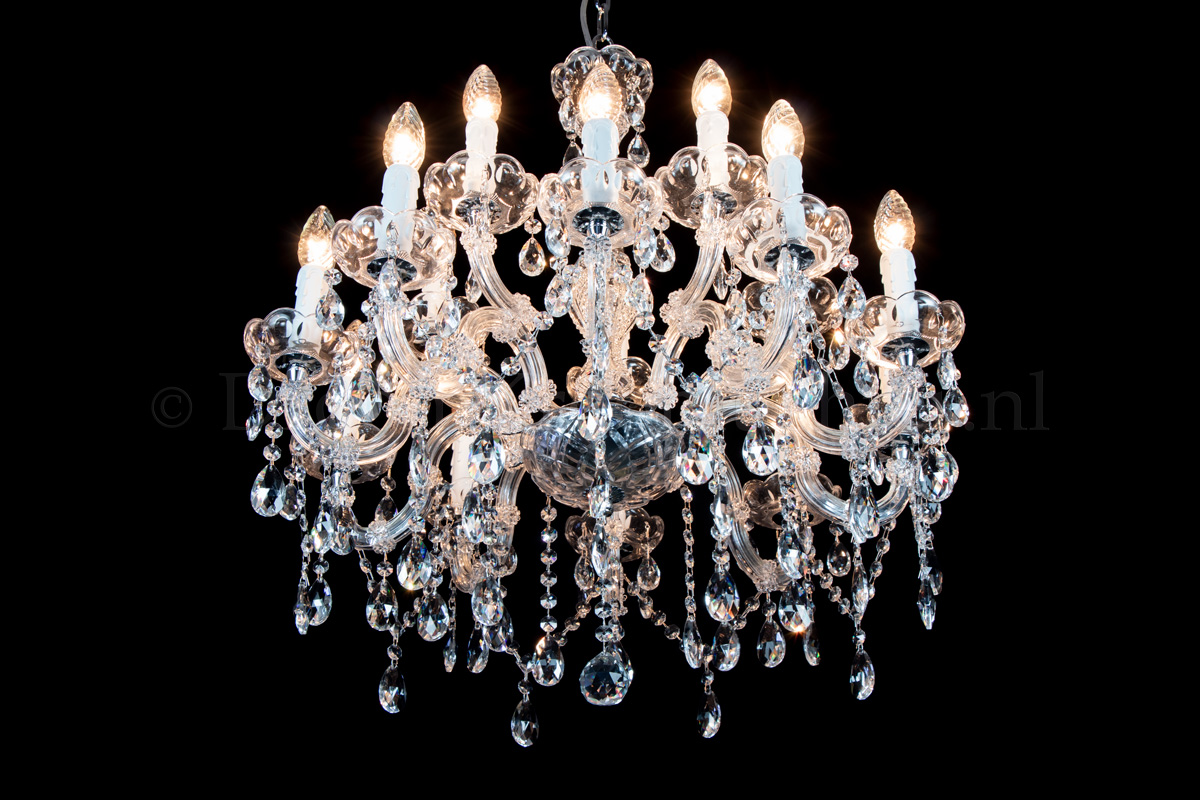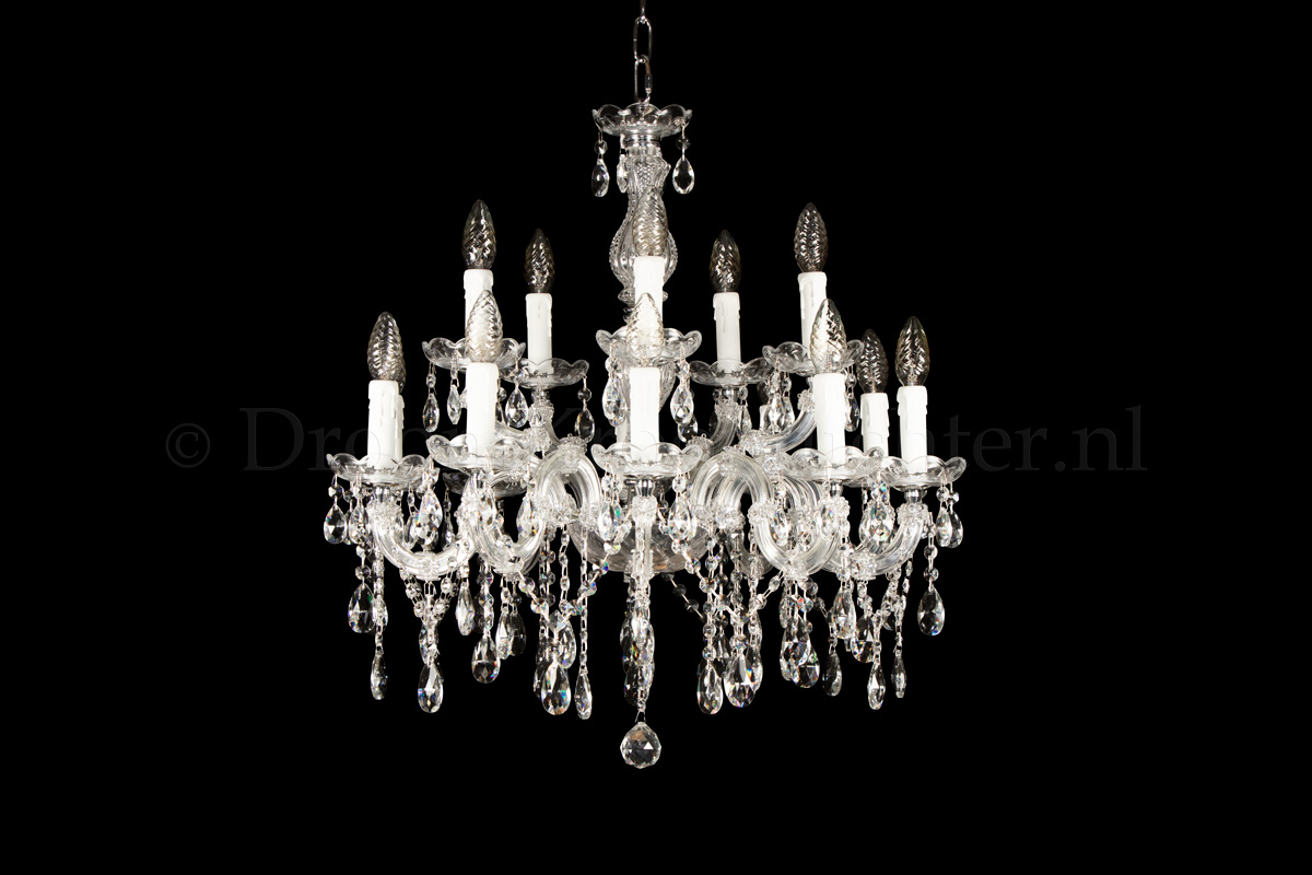 Un beau lustre avec 15 ampoules. Le lustre Marie Therèse est en chrome et a une finition parfaite.