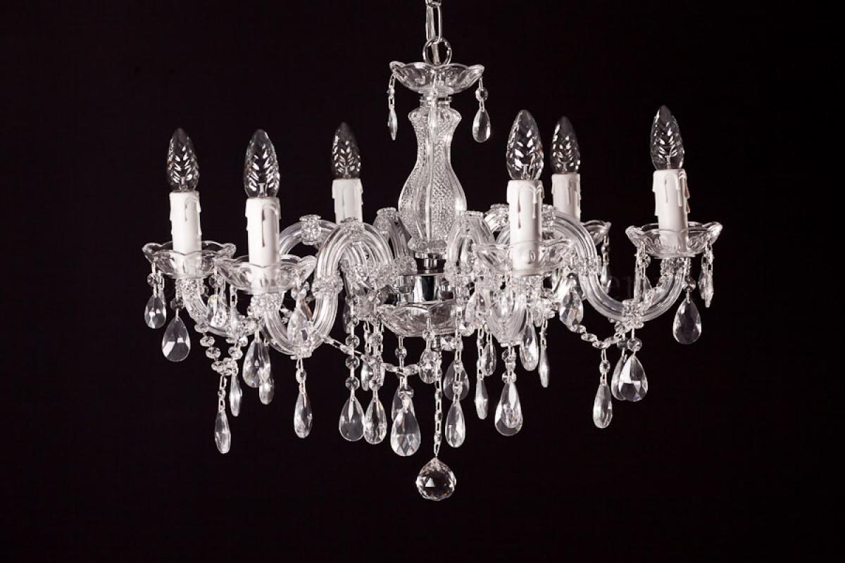 Le luminaire est une combinaison de métal, de verre et 'd'acrylique. Au bas du lustre, un fil de diamants en cristal et une boule de cristal à la fin. Les lustres Marie Therèse sont généralement caractérisés par leur forme gracieuse et leur apparence luxueuse. Le lustre classique aux bras élégants est doté de diamants et de bobeches en verre. La couverture de plafond et la chaîne sont bien sûr fournies dans la même couleur.