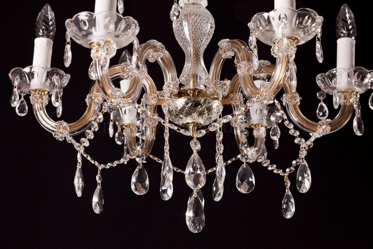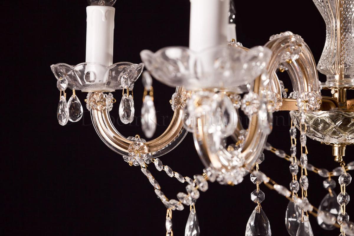 Un beau lustre avec 6 ampoules. Le lustre Marie Therèse est en or et a une finition parfaite.