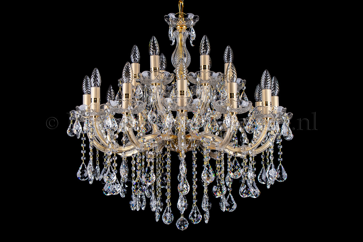 Lustre cristal de luxe Marie Therèse en or 12+6 ampoules - Ø75cm - Lustres en cristal