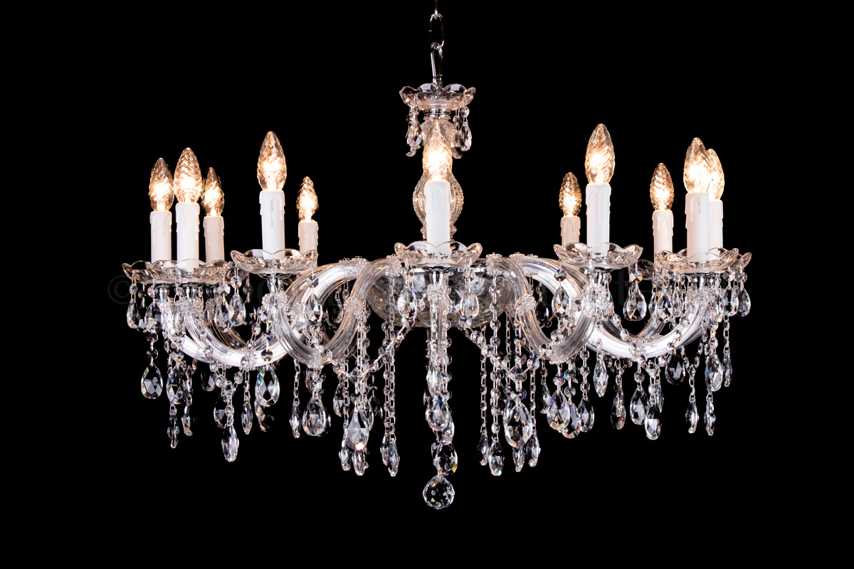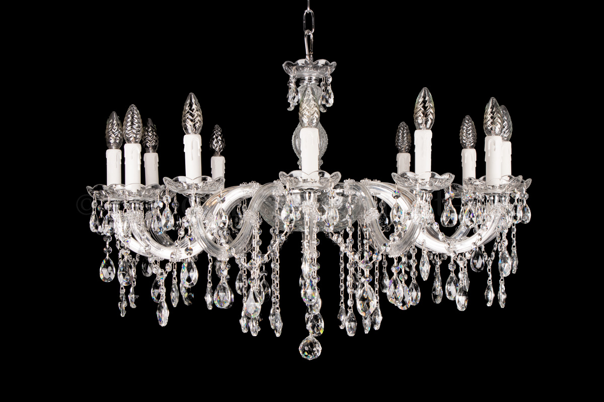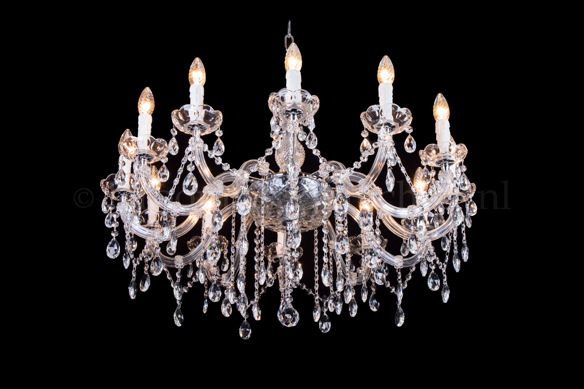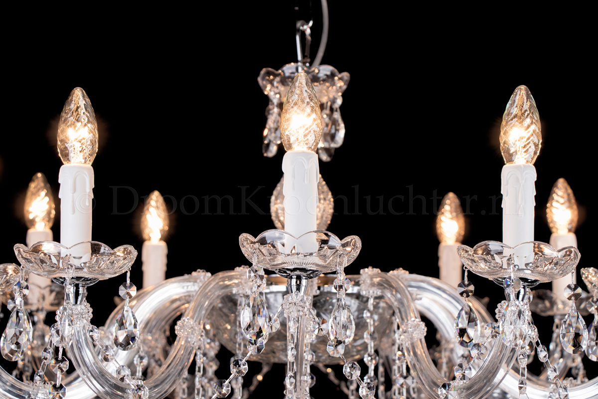 Un beau lustre avec 12 ampoules. Le lustre Marie Therèse est en chrome et a une finition parfaite.