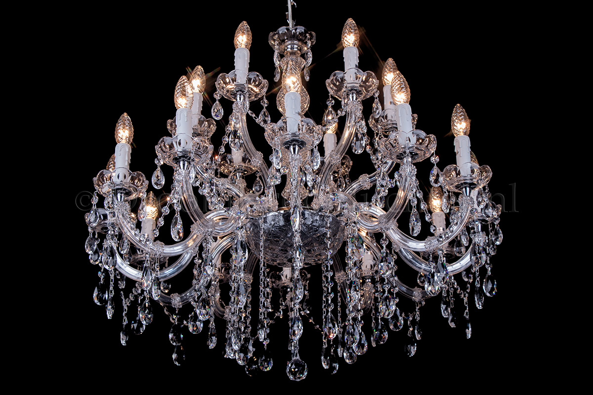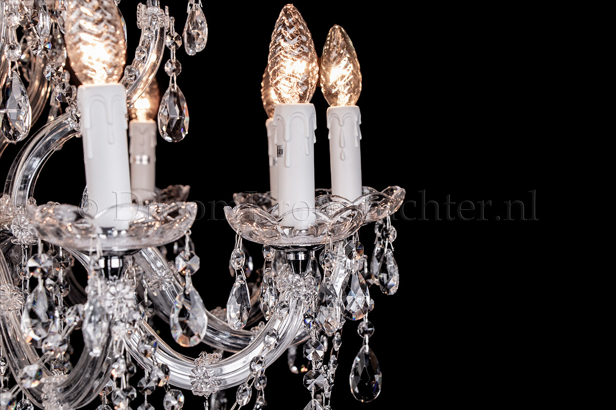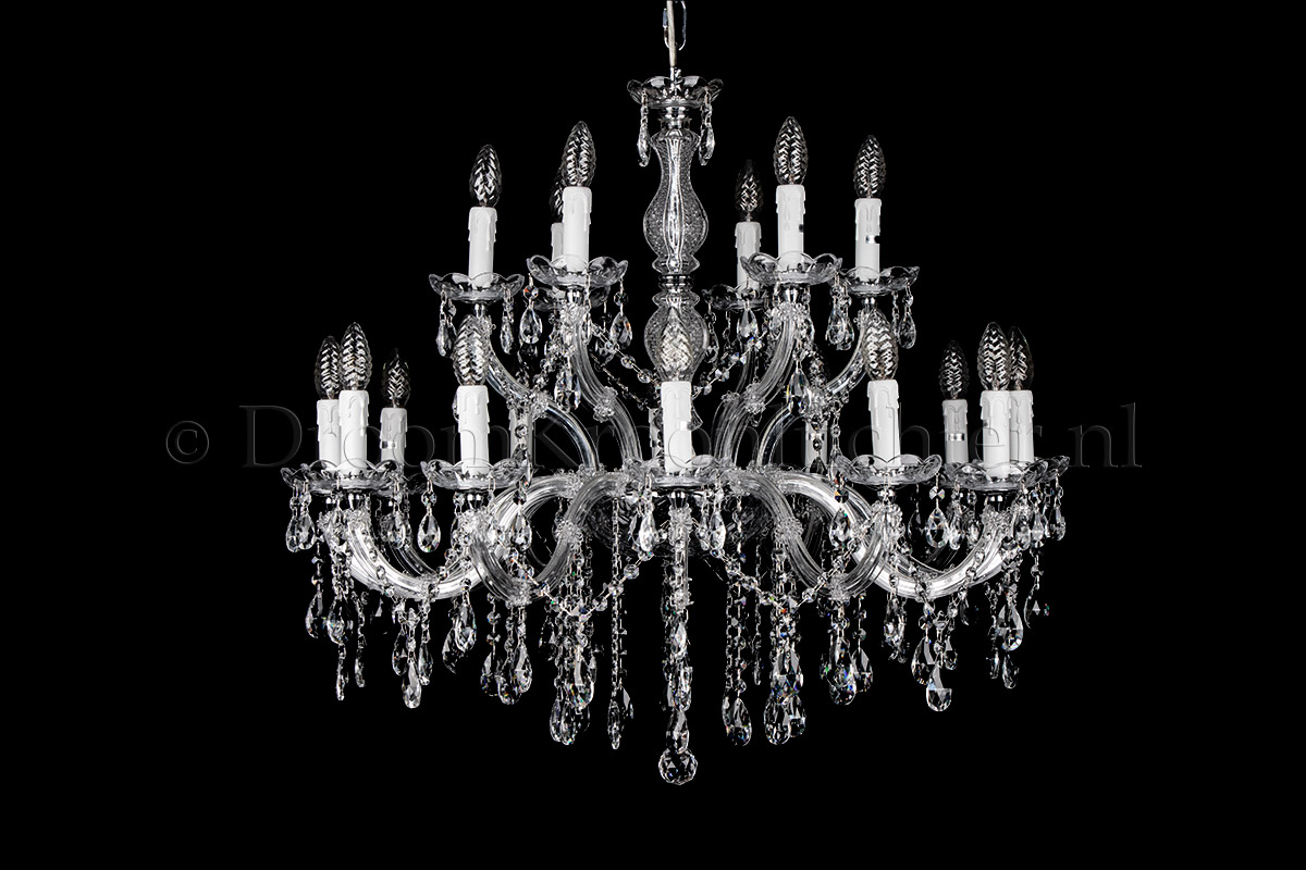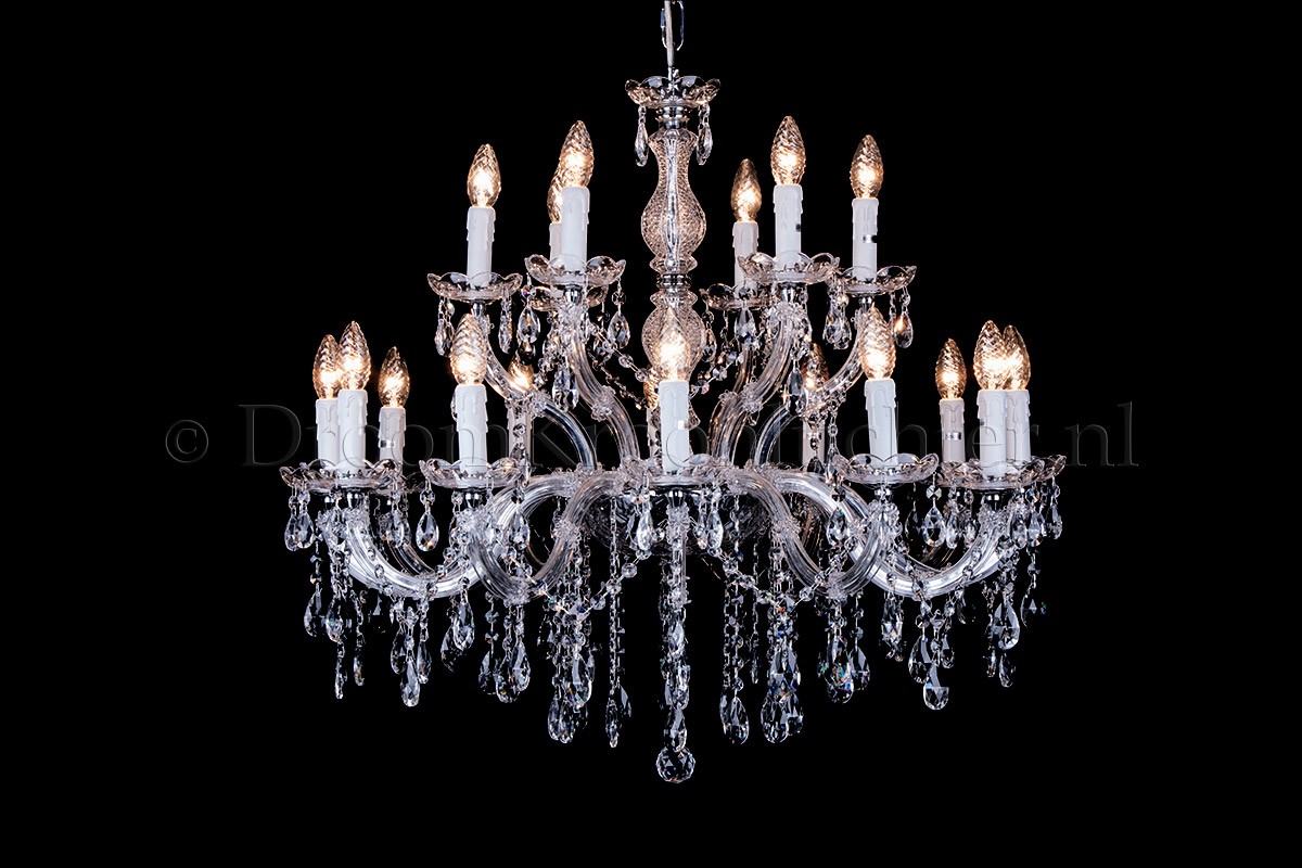 Un beau lustre avec 18 ampoules. Le lustre Marie Therèse est en chrome et a une finition parfaite.