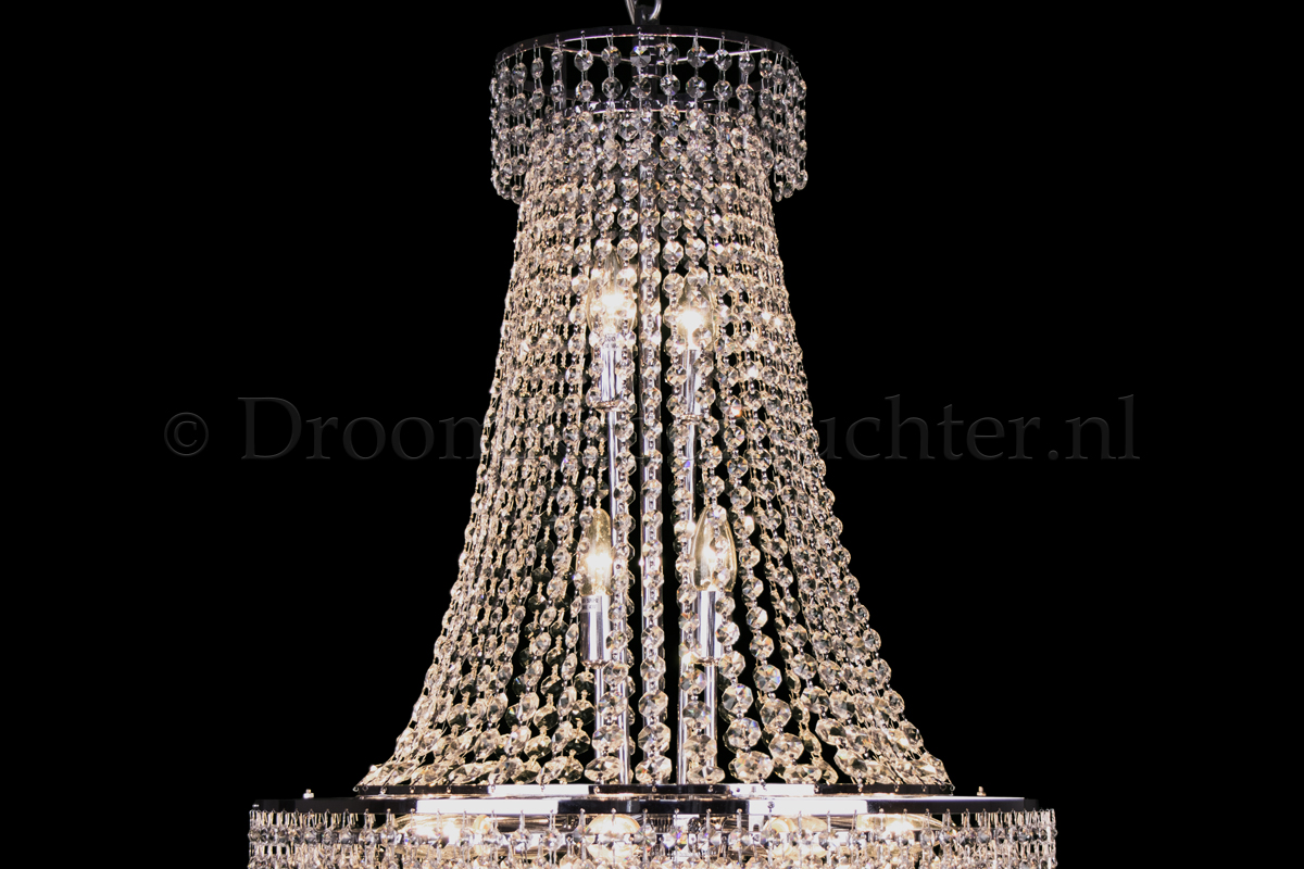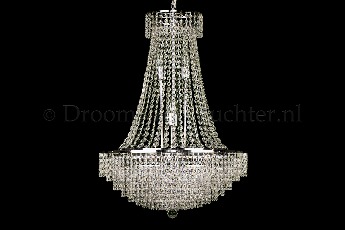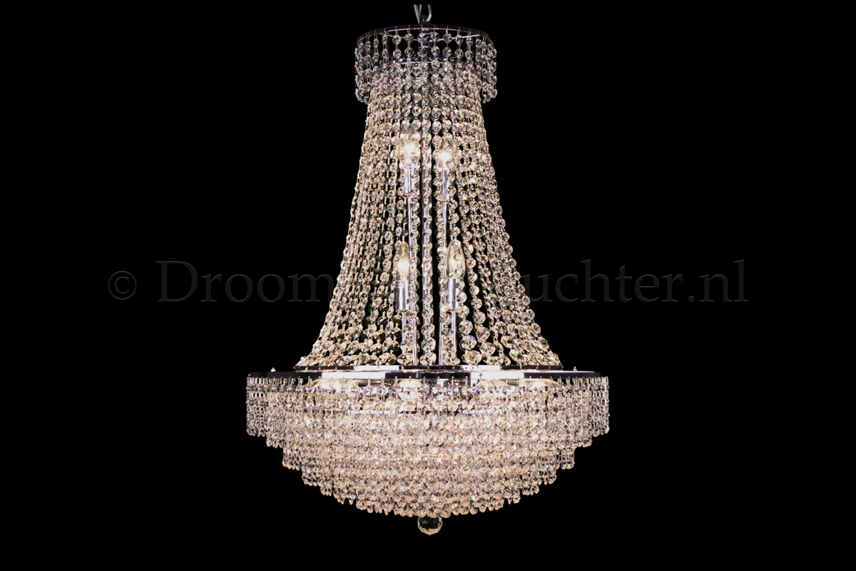 Ce lustre empire classique et multicouche a 15 ampoules, un diamètre de 58 centimètres et une hauteur de 80cm. Ce lustre empire est en cristal et a une armature en métal chromé. Le lustre empire en cristal donne à votre chambre une apparence chaleureuse et attrayante. Un magnifique lustre empire pour un prix de rêve! Commandez maintenant.