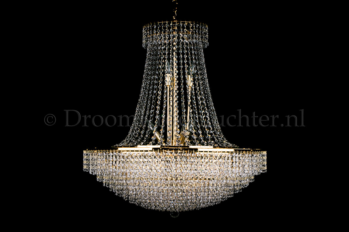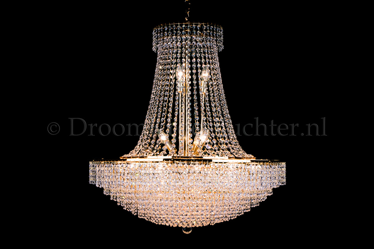 Ce lustre empire classique et multicouche a 24 ampoules, un diamètre de 80 centimètres et une hauteur de 90cm. Ce lustre empire est en cristal et a une armature en métal oré. Le lustre empire en cristal donne à votre chambre une apparence chaleureuse et attrayante. Un magnifique lustre empire pour un prix de rêve! Commandez maintenant.