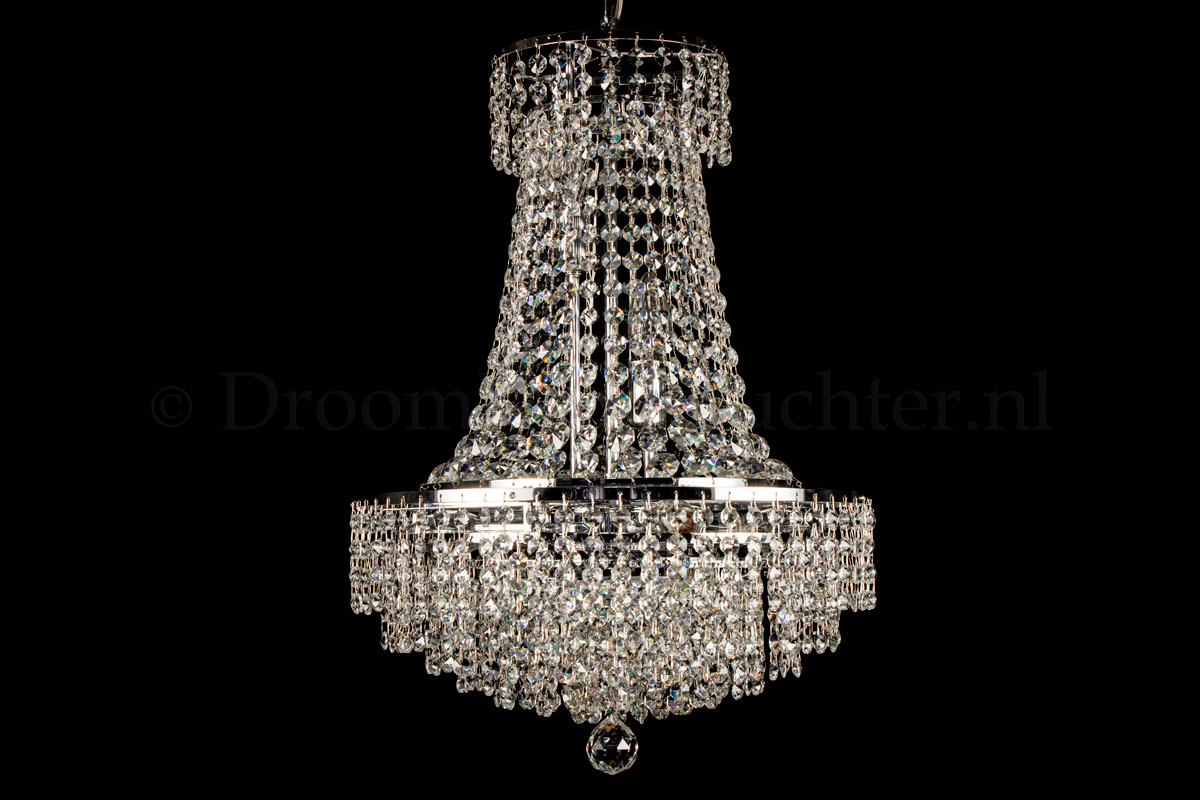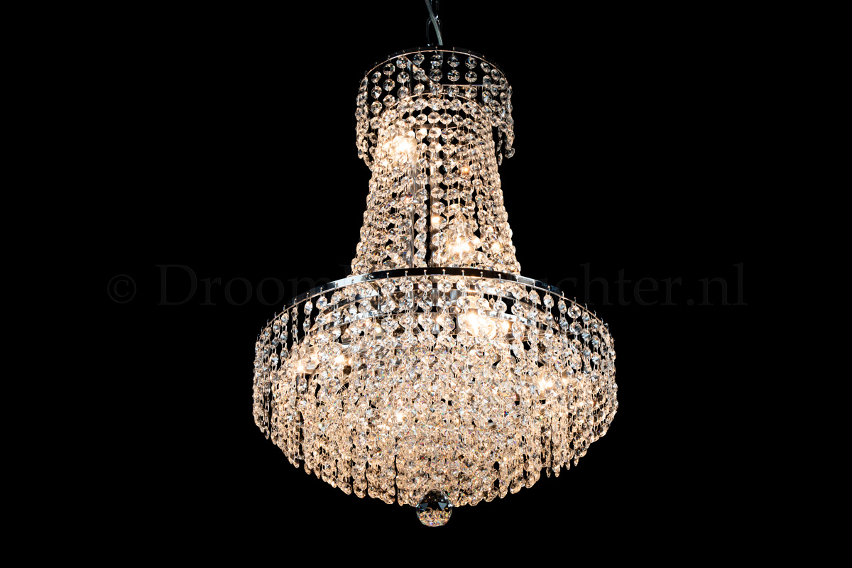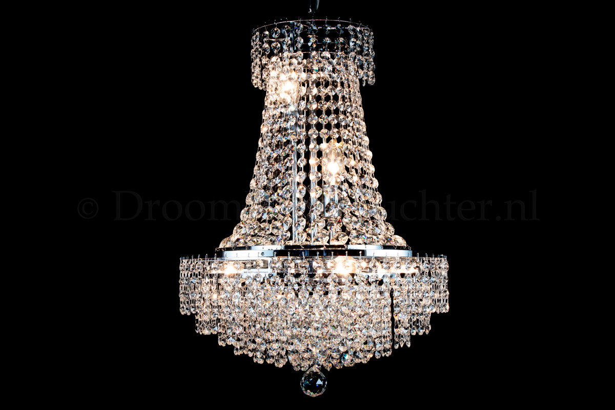 Ce lustre empire classique et multicouche a 6 ampoules, un diamètre de 40 centimètres et une hauteur de 60cm. Ce lustre empire est en cristal et a une armature en métal chromé. Le lustre empire en cristal donne à votre chambre une apparence chaleureuse et attrayante. Un magnifique lustre empire pour un prix de rêve! Commandez maintenant.