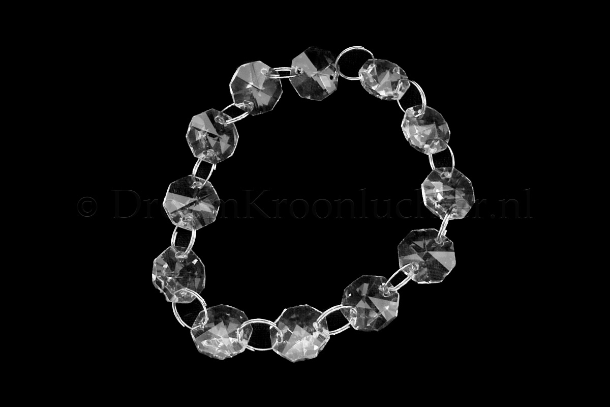 Un mètre de perle de cristal octogone 14mm est disponible avec des clips chromés et des clips en or...