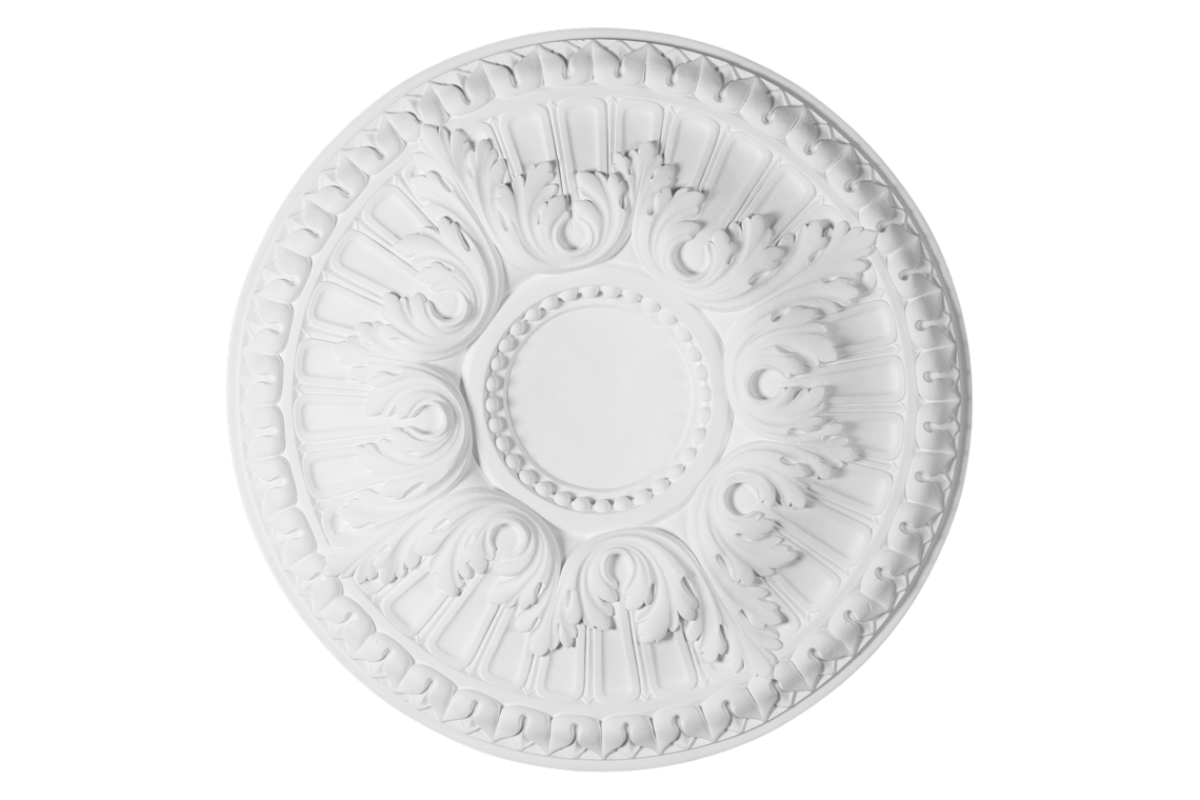 Un bel ornement de plafond en plâtre. Cet ornement s'intègre également bien dans un intérieur moderne avec un plafond plâtré élégant.