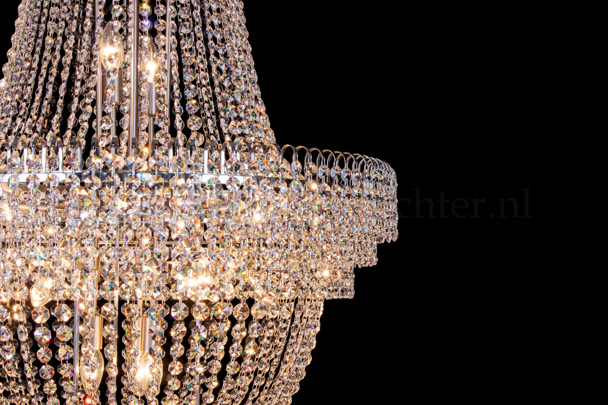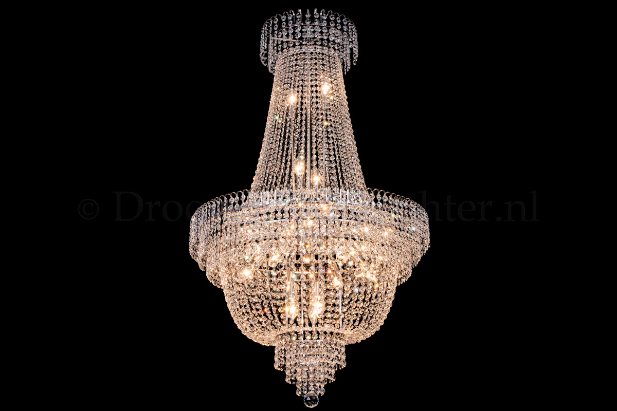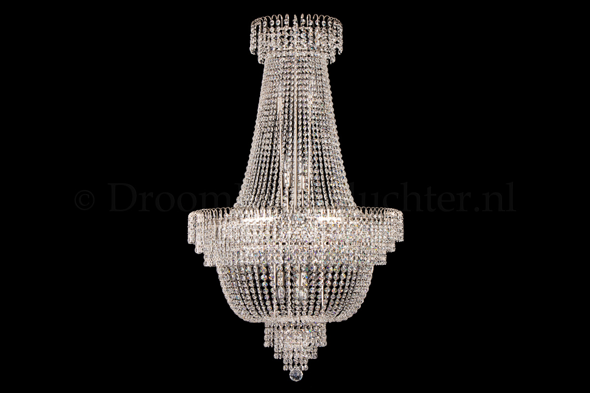 Ce lustre empire classique et multicouche a 19 ampoules, un diamètre de 80 centimètres et une hauteur d’au moins 130 cm. Ce lustre empire est fabriqué en cristal et possède des bords argent mat. Le lustre empire en cristal donne à votre chambre une apparence chaleureuse et attrayante.