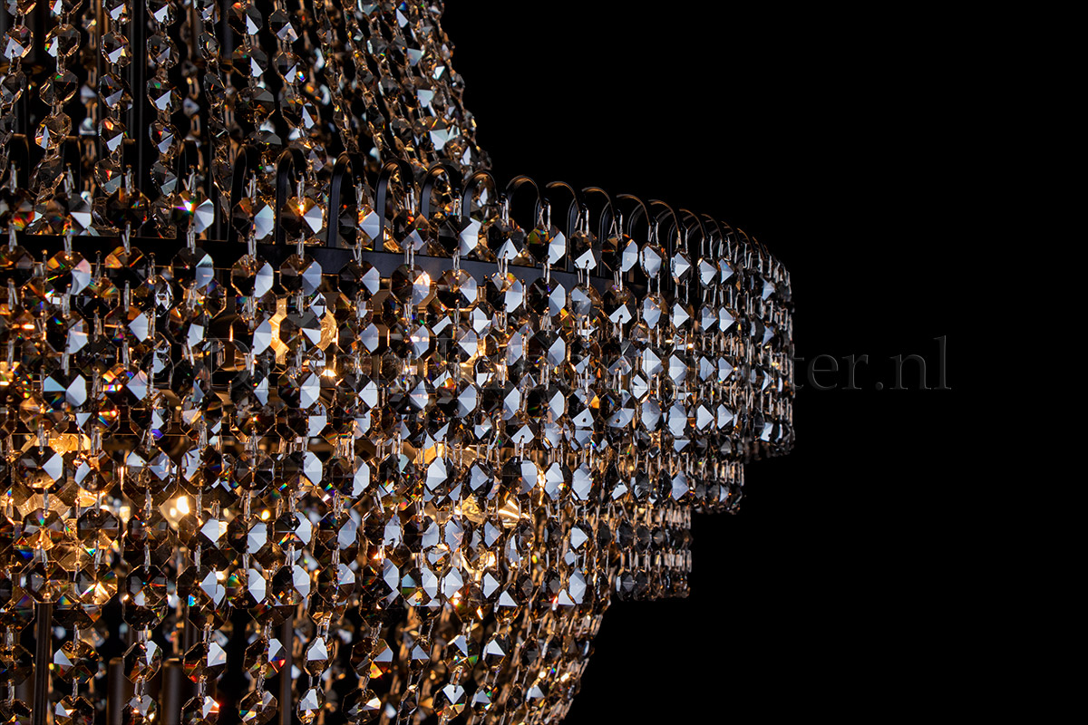 Ce lustre empire classique et multicouche a 19 ampoules, un diamètre de 80 centimètres et une hauteur d’au moins 130 cm. Ce lustre empire est fabriqué en cristal noir fumée et possède des bords noir mat. Le lustre empire en cristal donne à votre chambre une apparence chaleureuse et attrayante. Un magnifique lustre empire pour un prix de rêve! Commandez maintenant.
