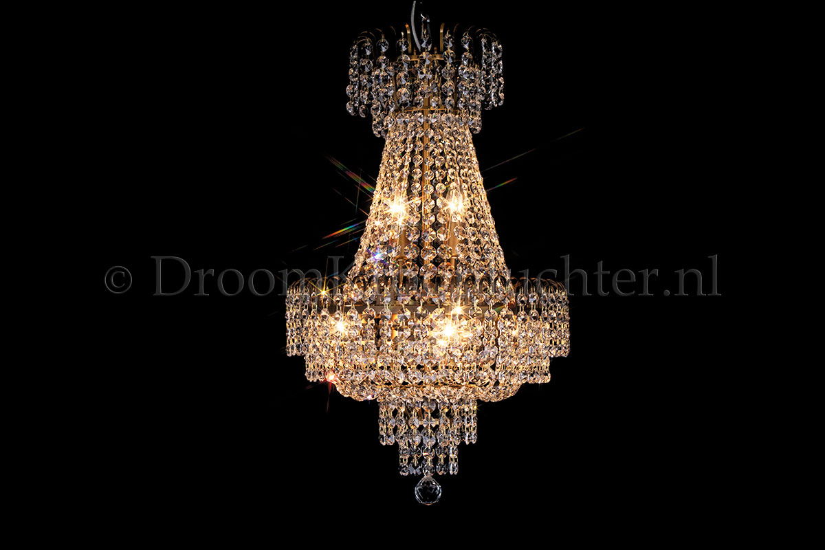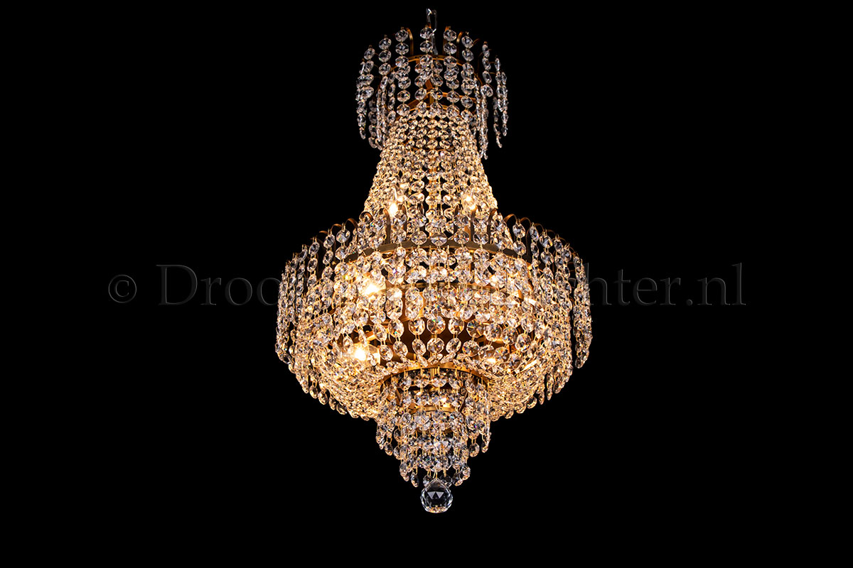 Lustre Empire 9 ampoules cristal or - Ø50cm - Salle