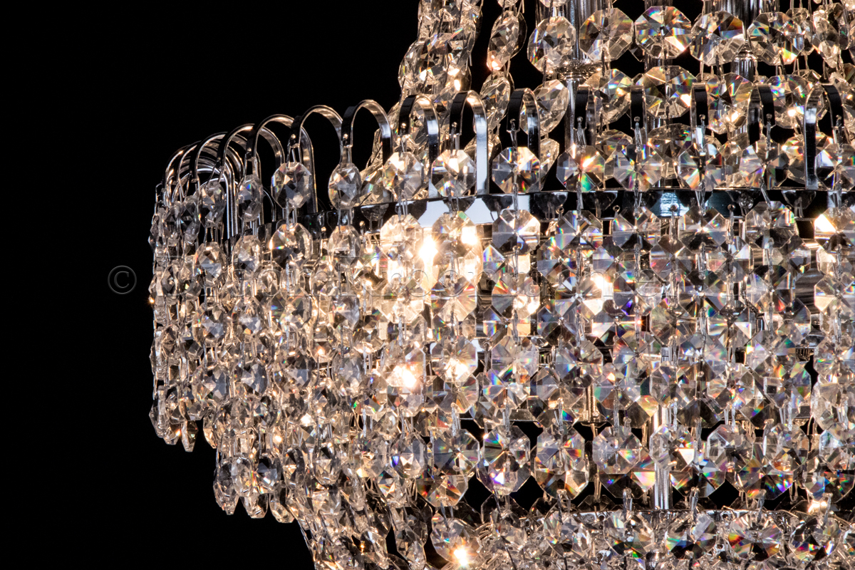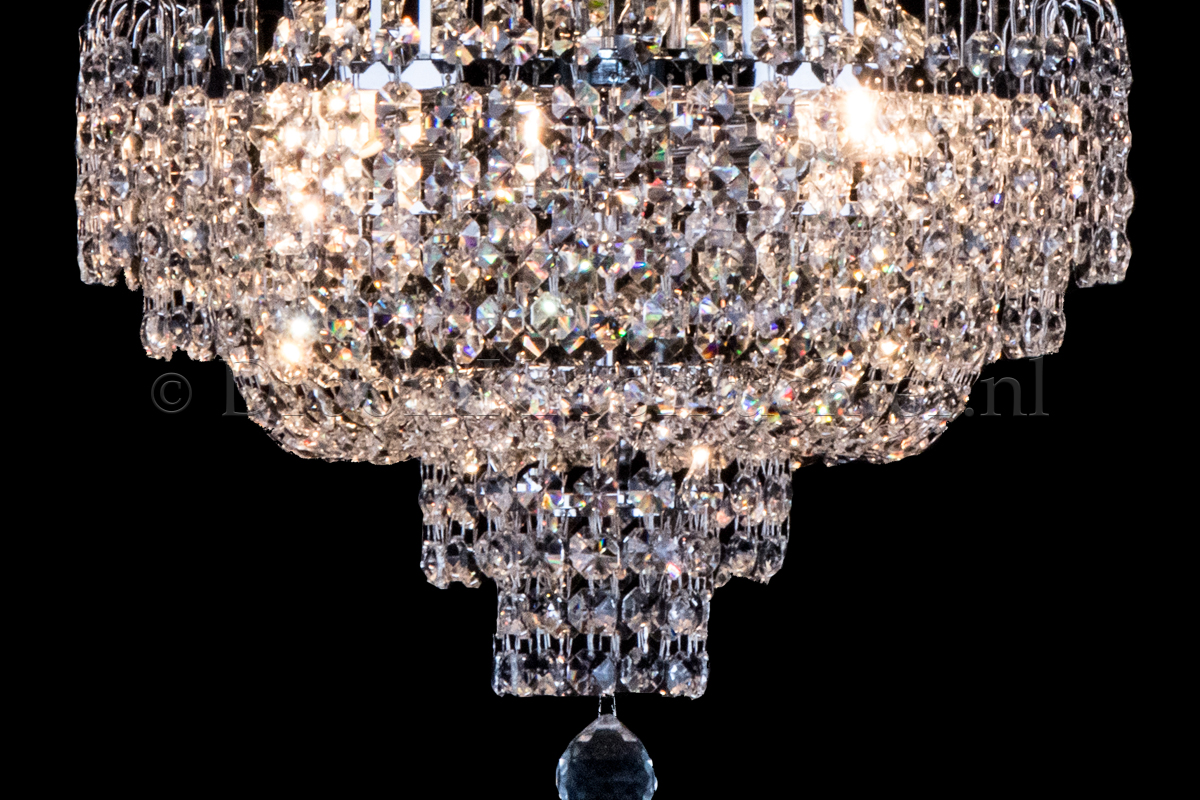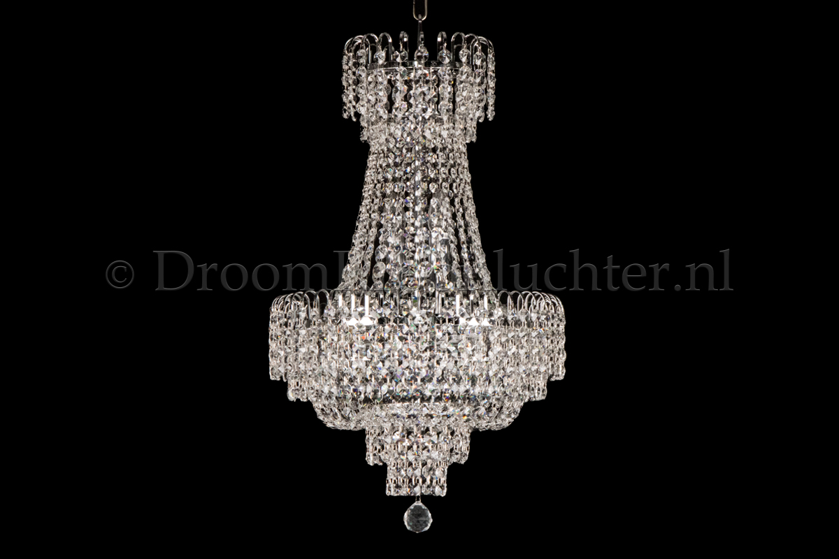 Ce lustre empire classique et multicouche a 9 ampoules, un diamètre de 40 centimètres et une hauteur d’au moins 70 cm. Ce lustre empire est fabriqué en cristal et possède des bords chrome. Le lustre empire en cristal donne à votre chambre une apparence chaleureuse et attrayante. Un magnifique lustre empire pour un prix de rêve! Commandez maintenant.